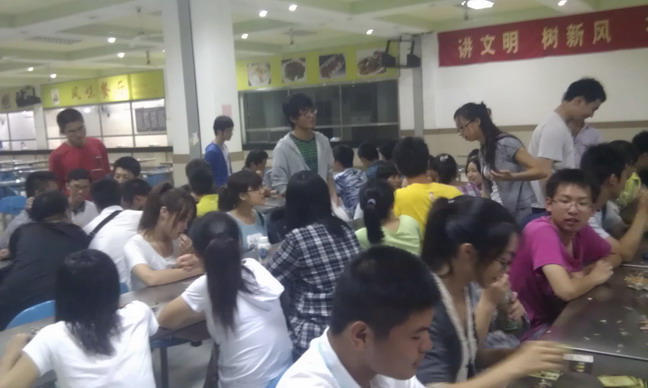 9月12日18:30,学生会全体学生干部在南二食堂二楼布置现场,桌子摆上了瓜子、月饼、糖果,饼干以及各种游戏道具迎接新生的到来。七点半,大一新生陆续到达,新生与学长学姐迅速熟悉起来,学长学姐们分布在各个新生群体中与他们交流,传授经验,和他们一起游戏。