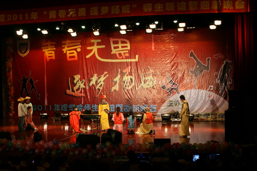 青春伊始,艺彩缤纷。为欢迎2011级新同学,促进院内学生交流,张扬青春个性,迎接美好大学生活,yl6809永利皇宫分团委学生会主办的2011年yl6809永利皇宫“青春无畏,逐梦扬威”师生联谊暨迎新晚会于10月26号18:30在大学生活动中心青春剧场隆重举行。yl6809永利皇宫院长李雷,副院长包刚,党委副书记、组织部副部长赵允玉、信息与计算科学系副主任蒋志芳,2011级班主任李永涛、田友伟,分团委书记李伯虎,辅导员黄洁、胡国宝观看了晚会,应邀观看晚会的还有校学生会主席许翔宇、社团联合会主席及各兄弟院系学生会主席。