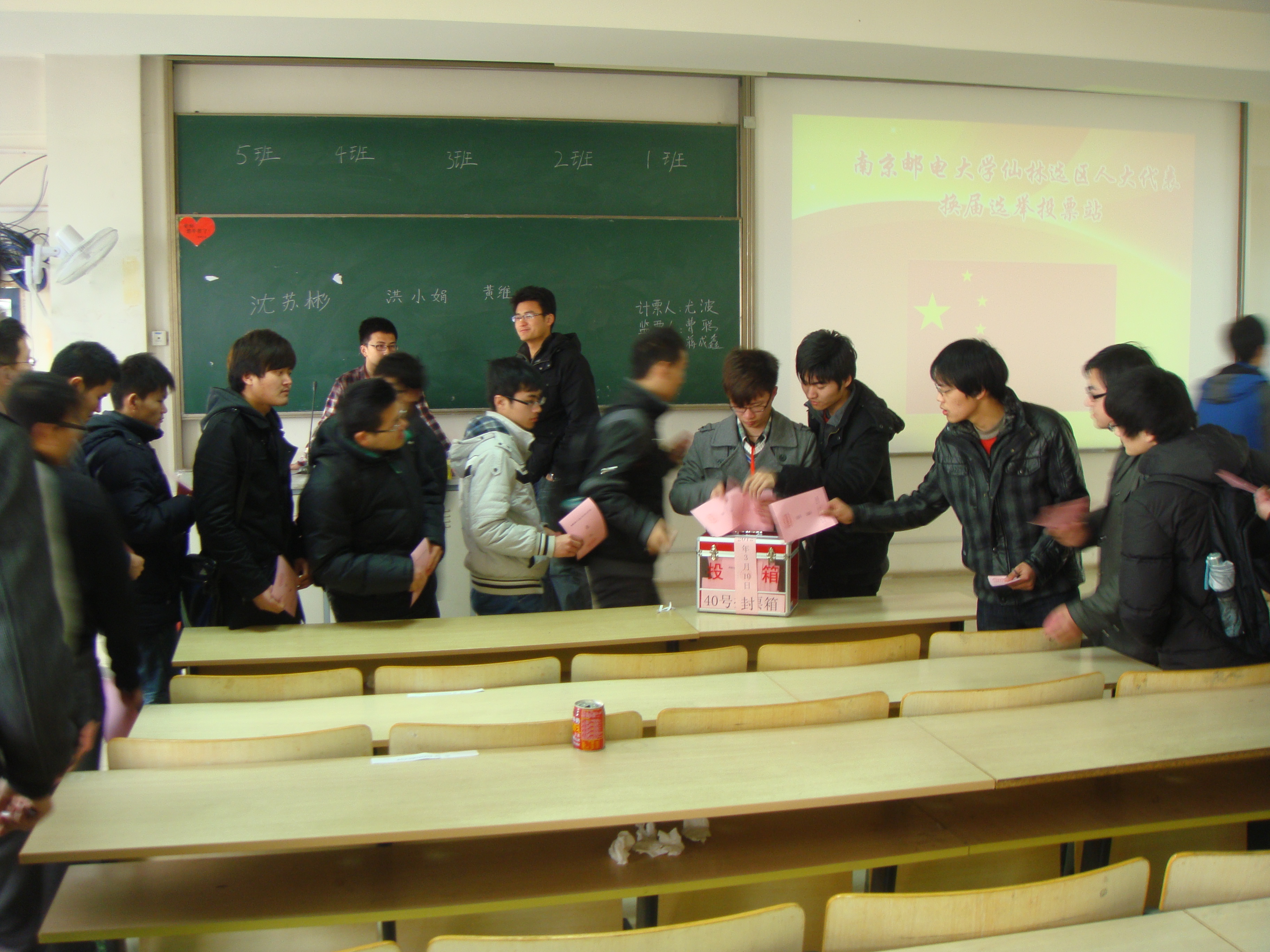2012年3月10日是南京市栖霞区第十七届人民代表换届高校选举投票日,yl6809永利皇宫600余名学生在各年级辅导员及学生干部的通力协作和精心组织下,排队有秩序地验证、领票、填写、投票,依法行使民主权利,投出自己庄严而神圣的一票,选出了自己满意的人大代表,整个选举过程秩序井然、程序规范。