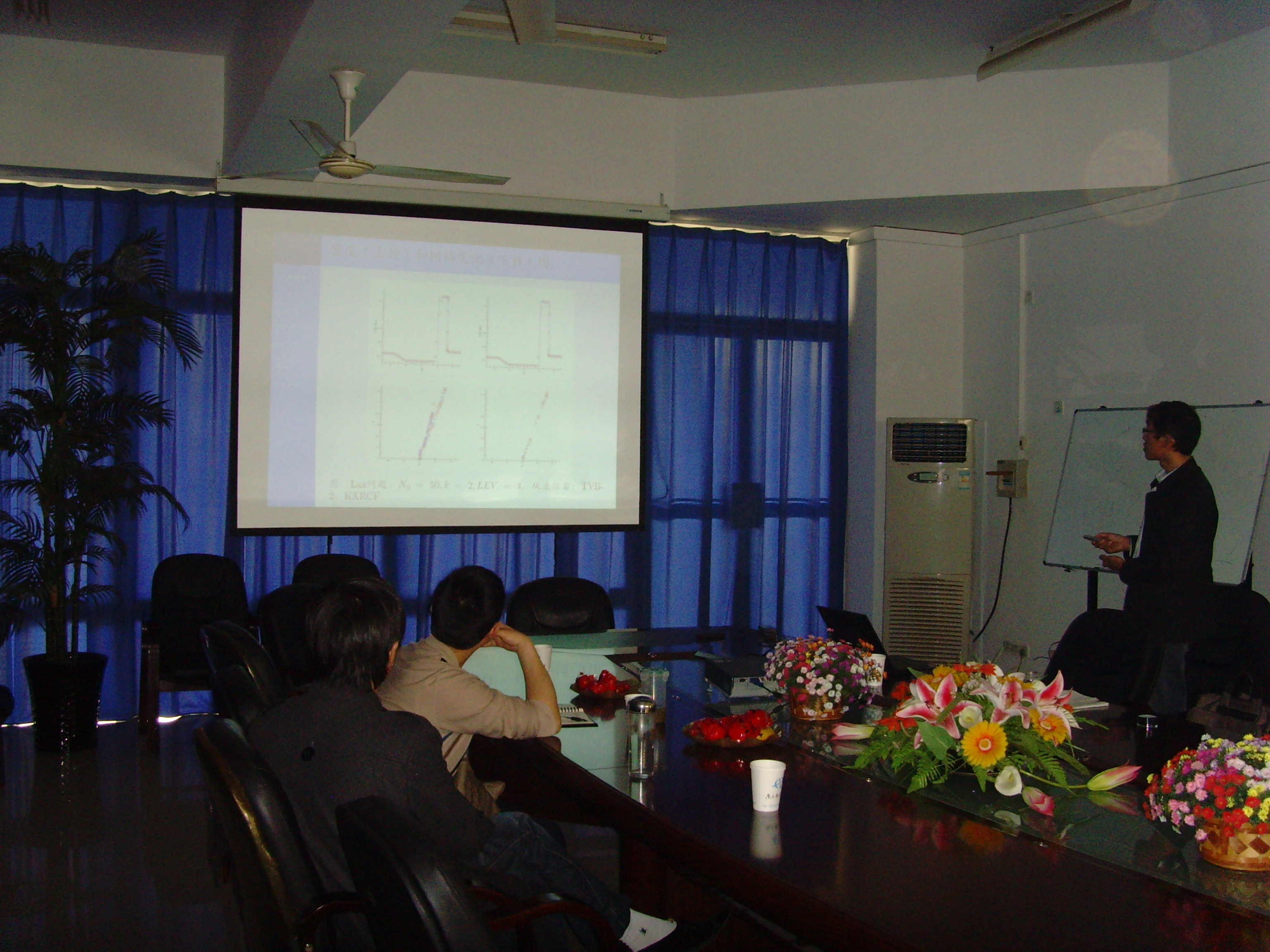韩老师的报告结束后,还举行了校庆科技学术活动的另一场学术报告,请朱洪强博士做了题为“自适应RKDG”方法的学术报告。