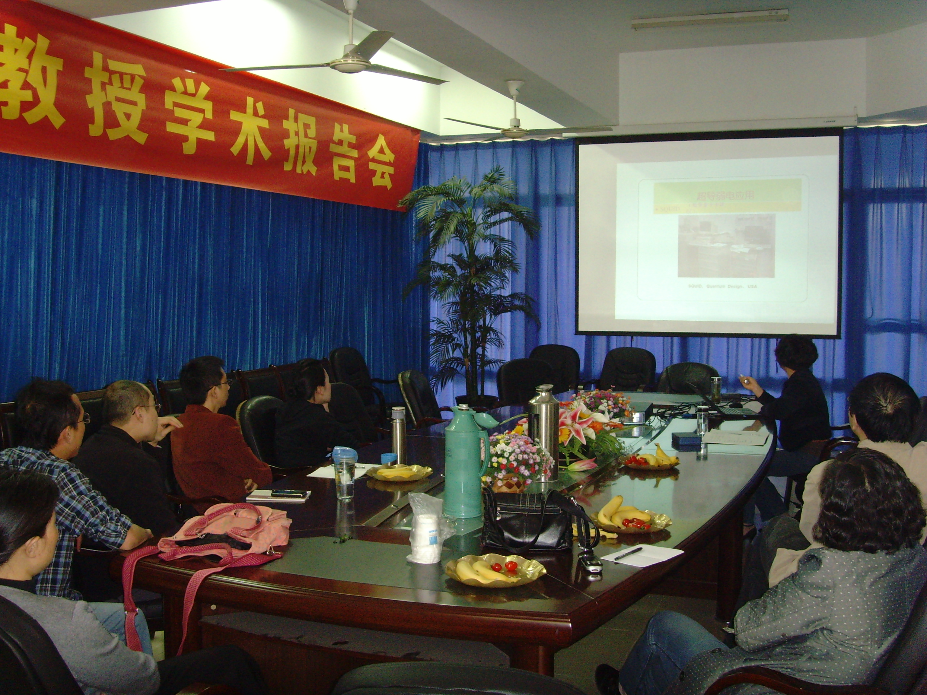 杨志红教授在报告中首先介绍了超导的研究历史、接着介绍了超导在强电和弱电两方面的应用,然后介绍了超导电子的隧道效应即约瑟夫逊效应,最后杨教授介绍了自己在隧道结方面的研究工作。参加活动的老师还就相关的问题进行了热烈讨论。