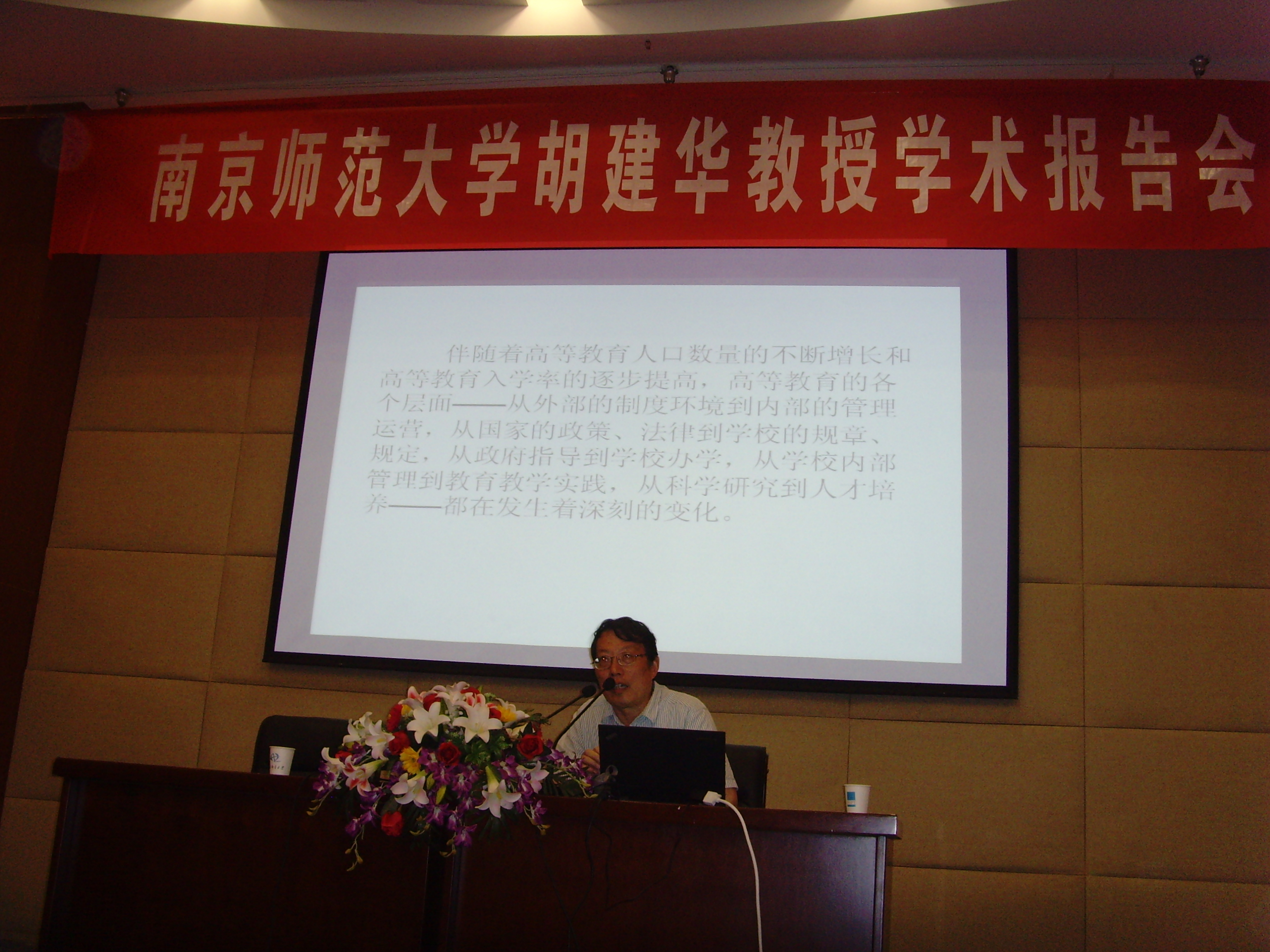背景资料:胡建华,男,1998年毕业于日本名古屋大学教育学部,获教育学博士学位。现任南京师范大学教育科学学院教授,院长,博士生导师。主要学术兼职有中国高等教育学会学术委员会委员,全国高等教育学研究会常务理事,全国教育科学规划高等教育学科评审组成员,江苏省高等教育学会常务理事、副秘书长,教育部人文社会科学重点研究基地厦门大学高等教育发展研究中心兼职教授,《Frontiers of Education in China》编委等。