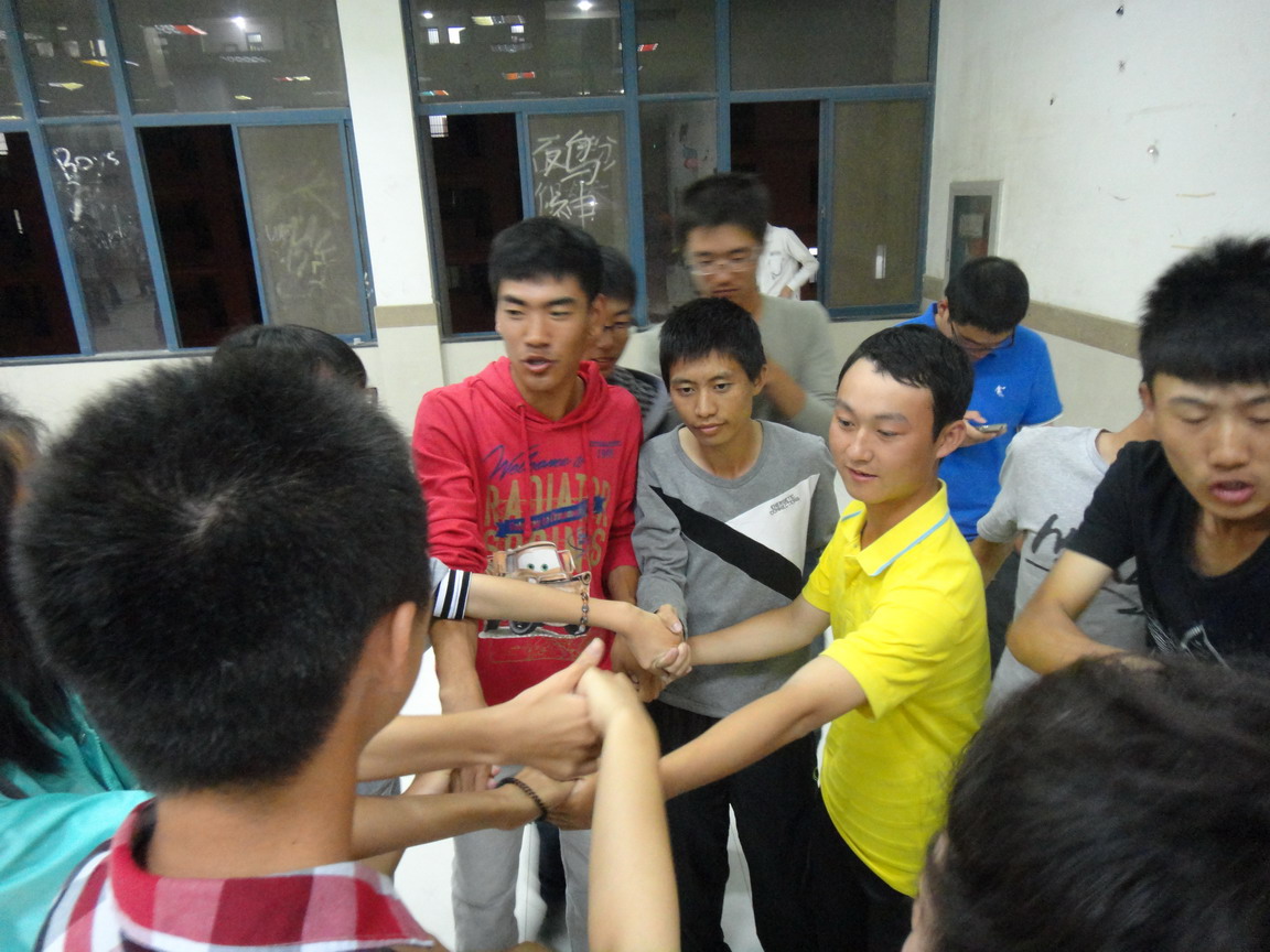 渐渐深邃的夜色不能减退同学们的半分热情。和谐的桌游座谈会拉开了整个中秋联谊的帷幕,同学们在欢乐的气氛中放开心声彼此交流,之后的游戏环节更是一次又一次把晚会的气氛推向了高潮。“解环你我他”中秋联谊会中尤其受到欢迎,这个游戏倾注了院学生会对学弟学妹们团结合作的美好期望,活动中,同学们围成一个圈,以解环为目的,以时间来衡量成败,大家在快乐游戏的同时也结交了新的朋友。最为激烈的游戏应当是“歌曲接龙”了,三支队伍的激烈比拼之后,最终一支5人小队取得了胜利,大家在歌声中找到了对大学生活的热情,也找到了对未来的憧憬。之后还进行了“你画我猜”的趣味游戏,通过各种搞怪的动作来进行游戏,大家在放松的同时忘却了两周军训的疲惫。