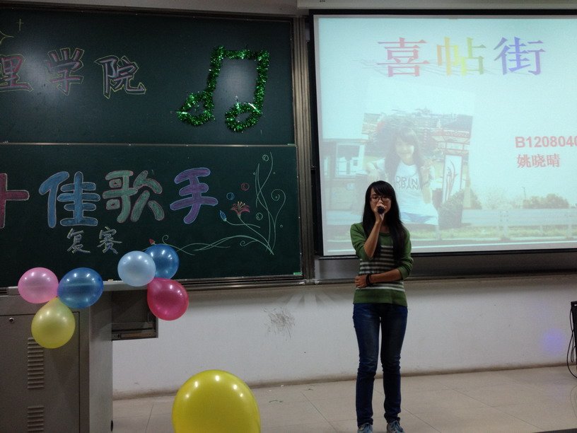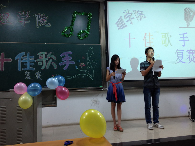 比赛在罗伟隆同学的《放生》中拉开了帷幕,邹玲玲同学和姚晓晴同学也演唱了各自的歌曲,三位同学经过评委的专业点评对自己的演唱技巧有了新的认识。接着魔术社的同学表演了精彩的魔术,将晚会的氛围推向了高潮,此时此刻不单是选手,就连观众也全身心的投入到了这场精彩的比赛中。之后赵师梅、李逸之等同学相继进行各自富有深情的演唱,比赛中场,选手和观众们还一起做了歌曲接龙和音乐猜猜猜的游戏,同学们忘却了比赛的紧张沉溺在欢乐的气氛中,一首首优美婉转、热情奔放、激情澎湃的歌曲,诠释着青春、张扬着个性、释放了心声。在这场高潮迭起的比赛中,台上台下的趣味互动,使选手、观众和评委形成了完美的整体。经过评委的认真评审,最终蒋雨曦凭借一首《维多利亚的秘密》摘得桂冠并获得最佳人气奖,李逸之获得第二名,杨蕾获得第三名。