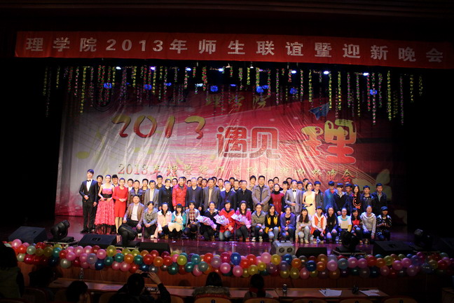 寒潮绕道去,热情洋溢来!11月20日18:30,yl6809永利皇宫“2013遇见理”师生联谊暨迎新晚会在大学生活动中心青春剧场隆重举行。yl6809永利皇宫党委副书记高翔,信息与计算科学系王兰宁,B130801班主任宋洪雪,分团委书记李伯虎,辅导员黄洁、胡国宝等作为老师代表参与了晚会演出。yl6809永利皇宫院长李雷,副院长兼B120806班主任包刚,副院长赵洪牛、唐加山,B130802班主任朱洪强,B130804班主任吴珍英,B120805班主任毛巍威,B100802班主任应志领,B100803班主任金正猛等应邀到场观看晚会。