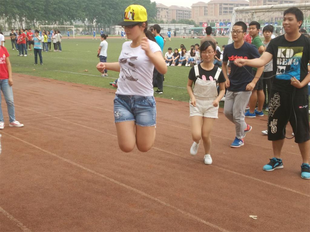 在激烈而又有趣的“心心相印”之后,就是考验班级同学们默契程度的跳大绳比赛。在两个比赛中间,同学们都纷纷提前拿起了跳绳进行练习,也有更多的同学们参与到了比赛中来。在进行了简单的练习后,比赛正式开始。同学们纷纷顺利得通过跳绳,一个接一个,充满了节奏感,即使有同学稍有停顿,大家也都给予了鼓励,场上的同学团结一致,为班级争光;场下的同学尽力呐喊,为同学们加油鼓劲。班级同学之间的感情在比赛中得到了升华。