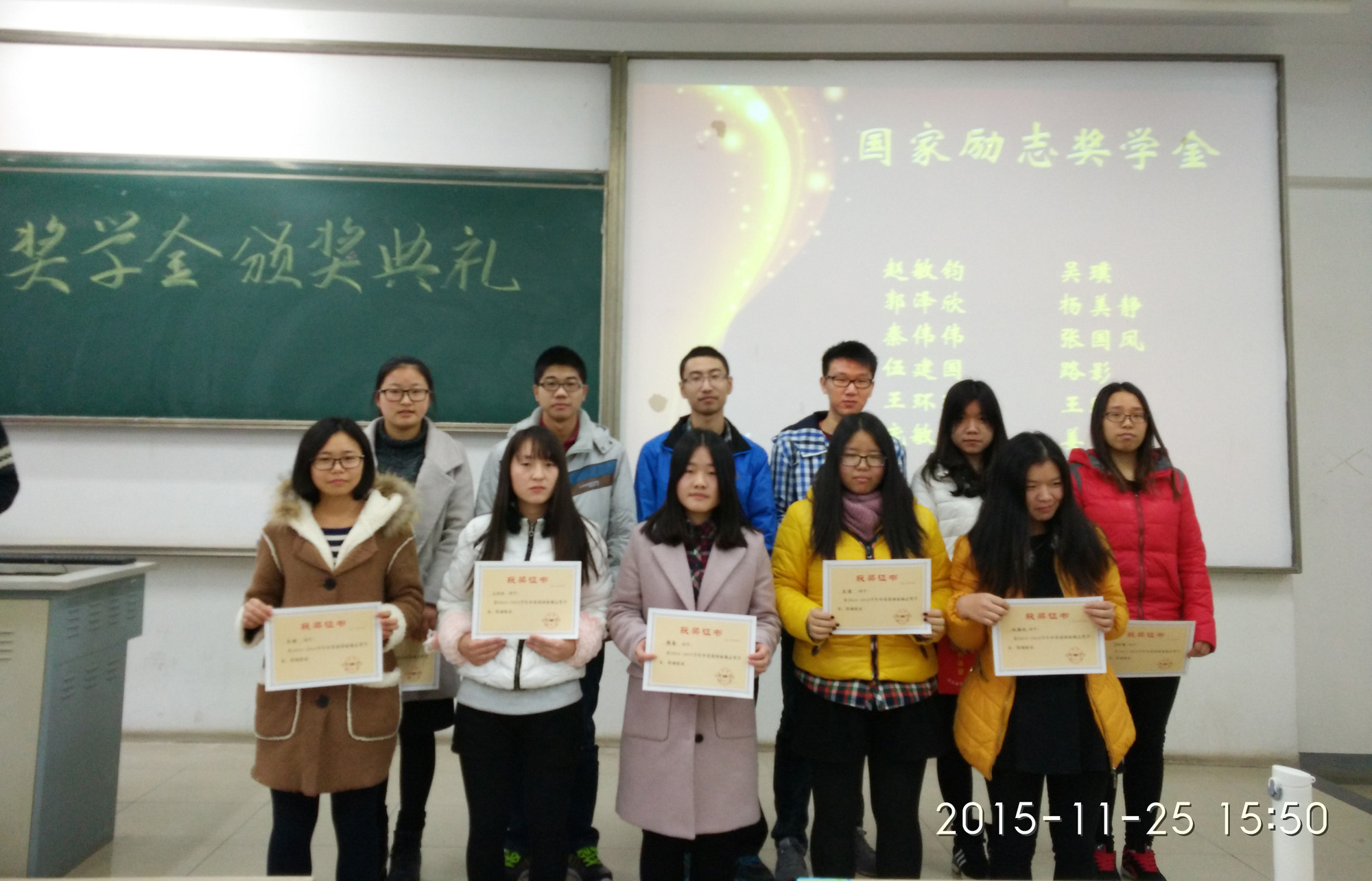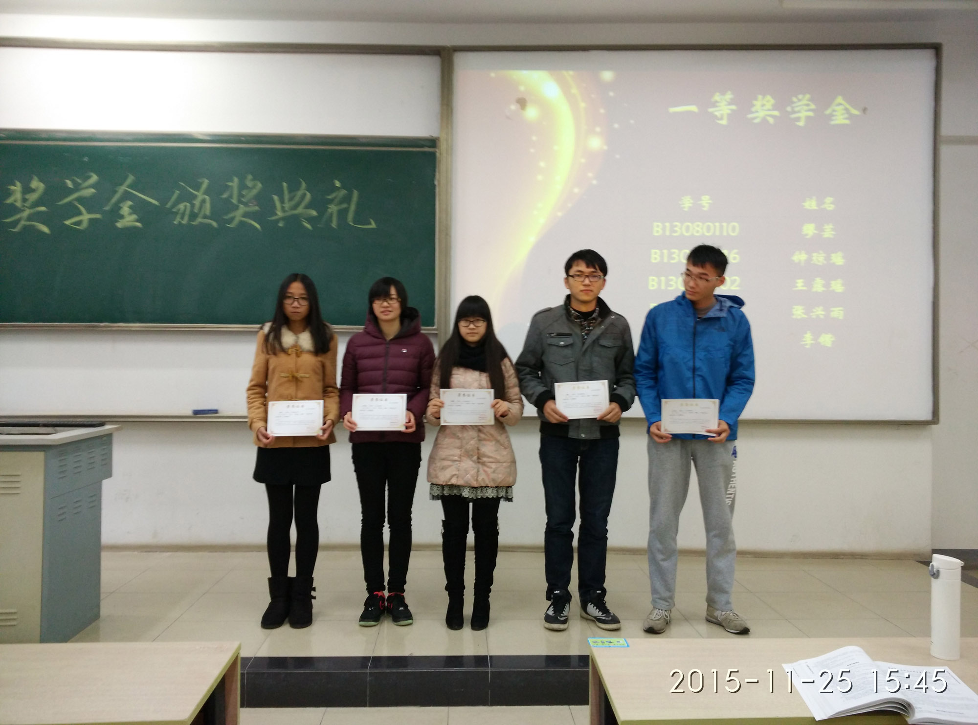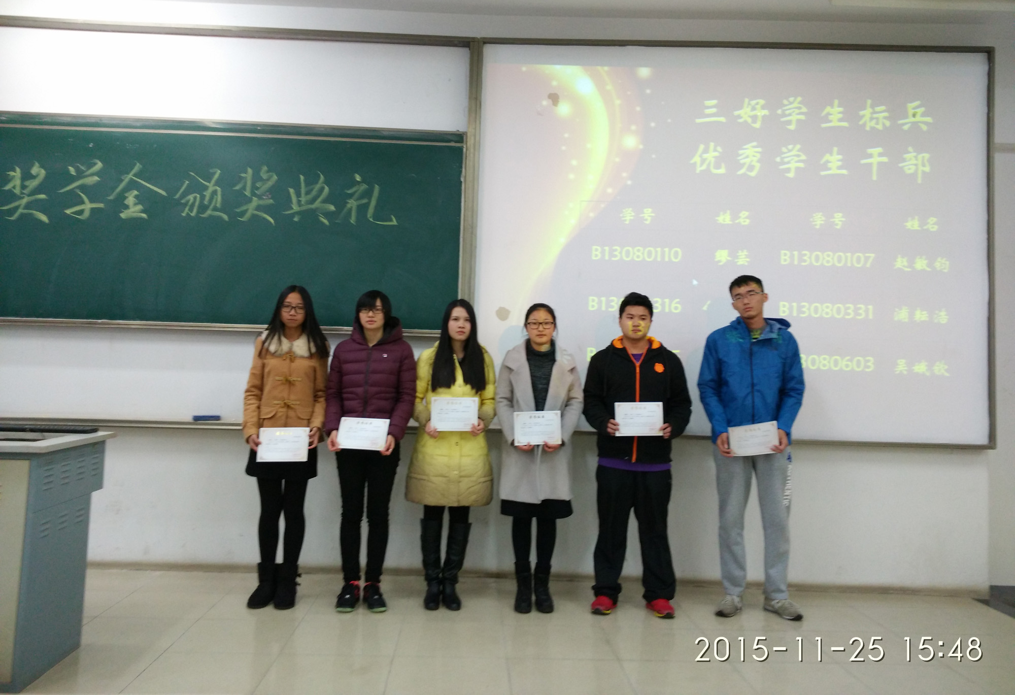 为了树立良好学风,表彰先进,激励学生努力学习,11月25日下午,yl6809永利皇宫2013级在教2-311举行了表彰大会暨奖学金颁奖典礼,对在2014-2015学年在学习、工作、社会活动等各方面表现优秀的集体和个人进行了表彰。