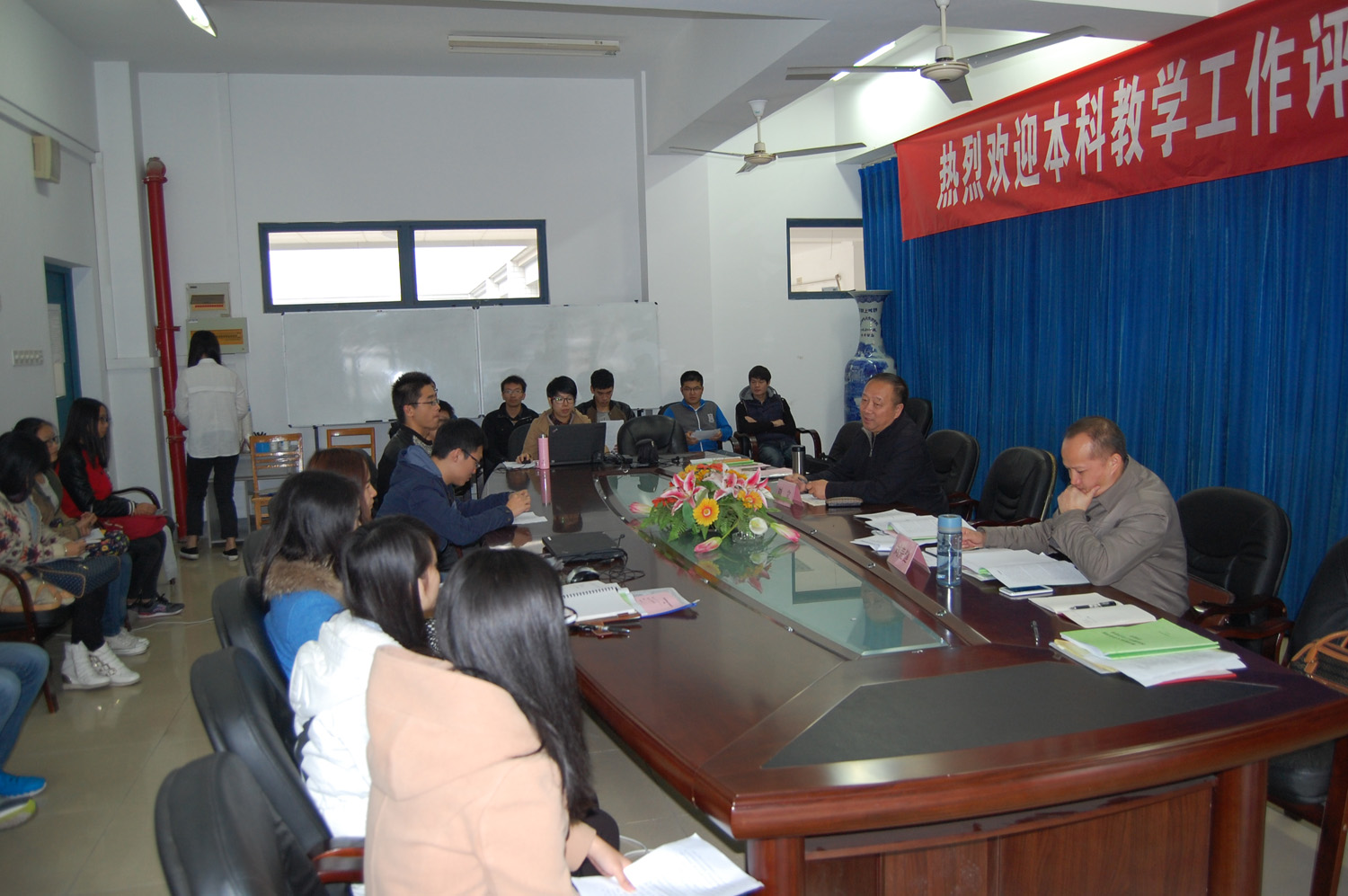 随后,专家组分为3个小组,与学院领导、教师代表、学生代表分别举行了座谈会。座谈会持续了一个半小时,专家们详细听取了领导、老师、同学们的各方面反馈,并耐心询问了相关问题。