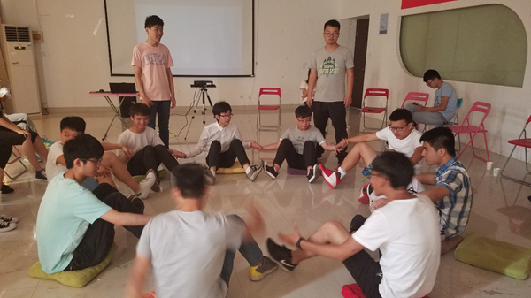 首先是心理委员朱兴宇同学就召开心理班会的目的意义进行说明,接着就是轻松愉快的游戏合作环节,如“大吹风,小吹风”、“报人名”、松鼠找洞”、“一起站起来”等,游戏极大调动了参与同学的积极性。同学们都全身心投入在游戏中,努力完成目标。最后是留言赠语,让同学们更好的认识自己与他人。
