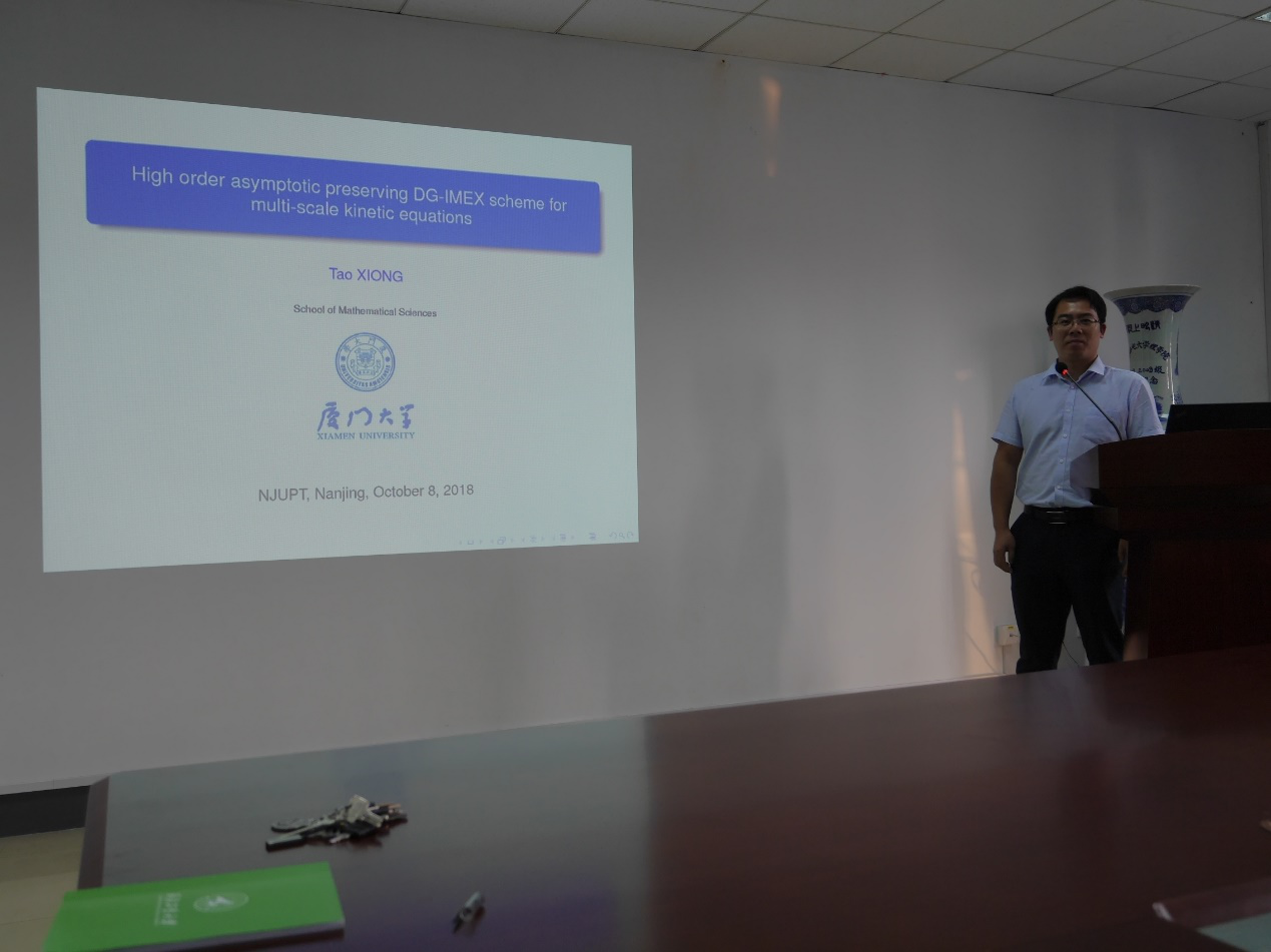 理学论坛第142期学术活动于2018年10月8日下午15:30-17:00在yl6809永利皇宫教2-314会议室成功举办。厦门大学数学科学学院熊涛教授应邀莅临论坛并做了题为“High order asymptotic preserving DG-IMEX schemes for multiscale kinetic equations”的学术报告。报告会由yl6809永利皇宫副院长兼统计学系主任唐加山教授主持,yl6809永利皇宫党委书记温勇教授、yl6809永利皇宫的部分老师以及应用数学和应用统计专业的部分硕士研究生参加了报告会。