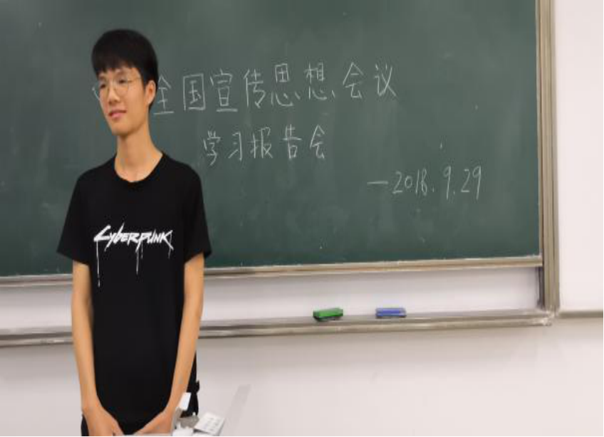 习近平总书记在工作会议上说到,要自觉承担起举旗帜、聚民心、育新人、兴文化、展形象的使命任务,坚持正确政治方向,在基础性、战略性工作上下功夫,在关键处、要害处下功夫,在工作质量和水平上下功夫,推动宣传思想工作不断强起来。在班级进行的学习报告会中,同学们深刻地体会到作为青年学生,应当结合习近平新时代中国特色社会主义思想和党的十九大精神,努力学好科学文化知识,不断完善自我,将行动统一到本次会议精神上来,不断为实现中华民族伟大复兴中国梦贡献自己的力量。