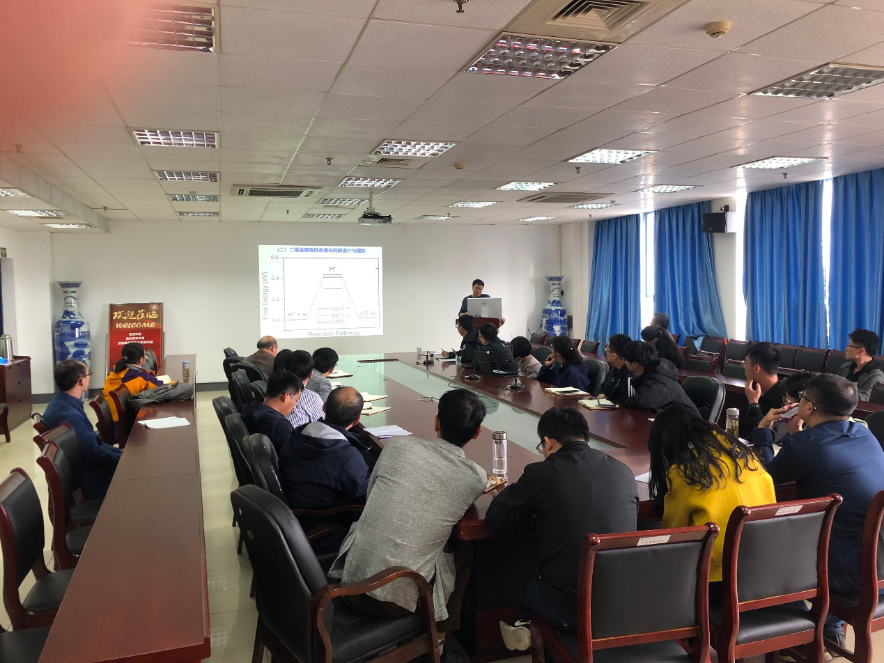 李亚飞教授的报告题目为“新型能源转换材料的设计与模拟”,李教授的报告从两个方面分别介绍了能源转换材料微纳结构的设计,以及新型非贵金属电催化材料的发展:1)材料的结构决定材料的性质,而具有新奇结构的材料往往能呈现独特的物理化学性质。在理论上设计出包含奇特平面五配位碳的Be5C2单层无机二维材料,这种由多中心离域键构成的二维体系具有很好热力学和动力学稳定性,同时具有类狄拉克锥的准金属材料和不同寻常的负泊松比特性。该材料在纳米电子学器件和力学器件领域具有潜在的应用价值。2)利用原位拓扑转化机制成功地制备出超薄铋纳米片,实验和理论都证实了该材料可用于电催化还原二氧化碳制备甲酸盐的反应,实现了二氧化碳的有效活化和固化,将其转化为化工原料,实现变废为宝的目的,该成果极大地推动二维铋烯材料在电催化二氧化碳还原领域的应用。