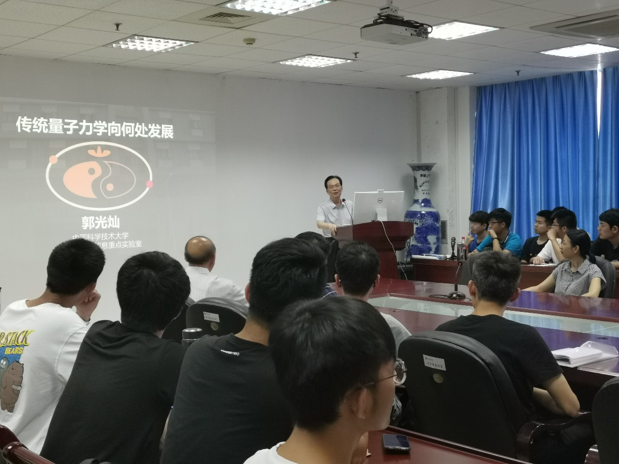 2019年9月9日下午3:30,理学论坛162期学术活动在教2-314会议室成功举办。中科院郭光灿院士莅临本次论坛并做了精彩报告。yl6809永利皇宫院长李兴鳌教授、副院长普勇教授,以及来自yl6809永利皇宫、通信与信息工程学院、材料科学与工程学院、电子与光学工程学院、微电子学院等学院的教师和学生120余人出席了本次活动。本次学术活动由李兴鳌教授主持。