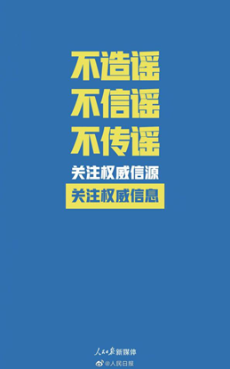 关注权威,拒绝谣言。病毒还在,疫情未去,现在正是中国抗疫的关键时期。虽然我们“宅”在家里,但是我们可以关注权威媒体了解时事消息,增长见识,拓宽眼界,做到“家事国事天下事事事关心”。疫情面前,大家一定要以权威媒体发布为准,做到不信谣、不传谣、不造谣,不为国家添麻烦,为战“疫”创造良好的舆论氛围,用坚定的信心打赢疫情防控阻击战。