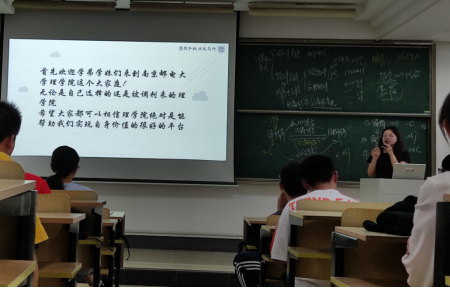 其次是汪书记向同学们介绍了转专业的标准和要求,提醒同学们根据自己的兴趣与能力慎重考虑转专业;接着又分享了她的大学学习经验,建议同学们要对大学生活有规划,树立明确的目标;最后,强调了新生应当在大学里做到自我学习,自我管理。