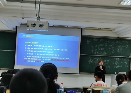 会上,首先是教务处彭老师发表了令人受益匪浅的讲话,并与同学们展开深刻的交流。彭处长对以下几个方面进行了介绍:一、选读课程与成绩管理,提醒同学们不可对线上课程报以随意态度;二、学籍注册、学业预警与学位授予;三、转专业、推优保研与国内外交流访学;四、考试及考试规则,强调了考试的纪律,对考试作弊等违规行为做出警戒;五、大学生创新训练计划学科竞赛,鼓励新生积极参加比赛,提升自己;六、毕业设计/毕业论文。