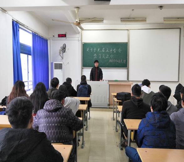 为深入学习宣传贯彻党的十九届五中全会精神,11月23日,B180706团支部组织开展“党的十九届五中全会精神学习交流会”主题团日活动。此次交流会由团支书贺常盛同学主持。