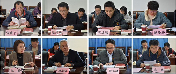 会议首先在教5-413会议室开展主题集中研讨,分别由材料科学与工程学院党委副书记、副院长张建平领学了《社会主义发展简史》第五章“中国共产党对社会主义建设道路的探索”主要内容;理学党委副书记、副院长汪颖领学了《中共江苏地方简史》第六章“社会主义建设的探索和曲折发展”主要内容。随后,两个学院党委理论学习中心组成员围绕“重温伟大历程,汲取奋进力量”主题分别作重点发言。