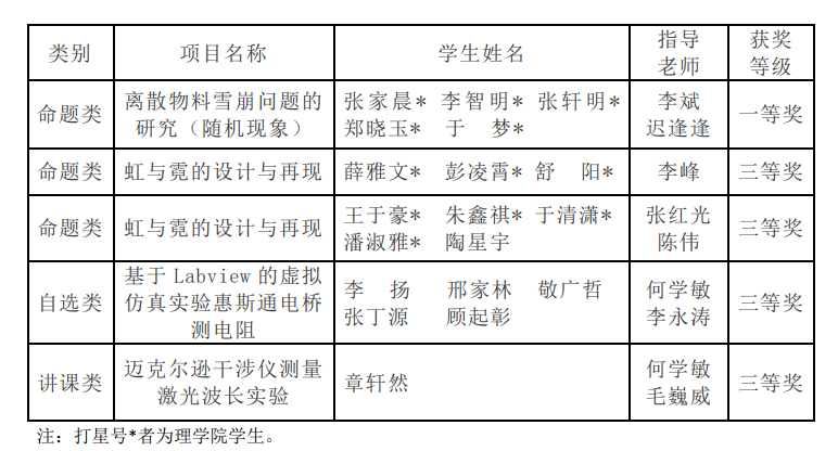 近日,2021年第七届全国大学生物理实验竞赛(创新赛)在南昌大学落下帷幕。我校5项作品全部获奖,其中一等奖1项,三等奖4项,这也是我校学子首次在全国大学生物理实验竞赛(创新赛)中获得最高奖项。