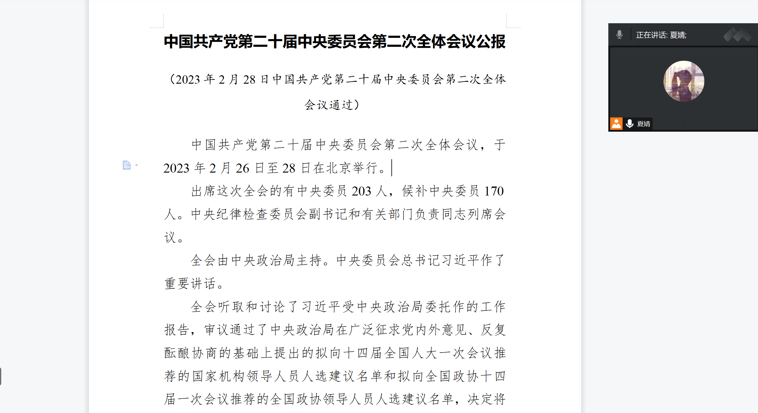 2023年3月12日,yl6809永利皇宫学工一支部组织支部党员观看学习中国共产党第二十届中央委员会第二次全体会议公报,进一步引导支部党员着重在党性上“提纯”、思想上“补钙”,增强“四个意识”、坚定“四个自信”、做到“两个维护”,自觉把思想和行动统一到党中央决策部署上来,不断增强自身党性修养。
