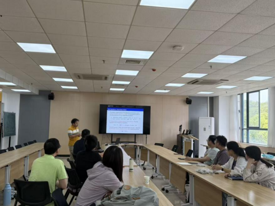 蔡明超教授以“Poroelasticity: Models, Algorithms, and Applications”为题,系统介绍了多孔弹性理论中的准静态与全动态模型,并进一步拓展至超弹性多孔介质的前沿本构模型,为复杂生物组织的力学行为模拟提供了重要的理论支撑。报告中重点讲解了一类无条件稳定的解耦算法,该类算法凭借其出色的计算效率和稳定性,有效解决了多物理场耦合问题中计算复杂度高和耗时长的难题,为大规模、高精度的实时数值仿真提供了关键技术基础。