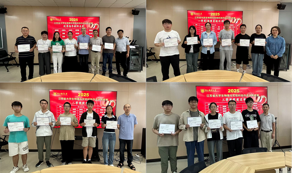 何学敏老师首先系统介绍了2025年上半年我校物理实验竞赛的组织开展情况与参赛获奖成果。随后,会议对在2025年江苏省大学生物理与实验科技作品创新竞赛中获奖的学生及指导教师颁发了荣誉证书。