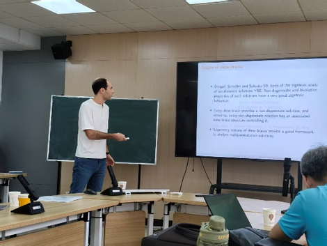 此次报告内容是目前国际前沿课题。两位专家首先介绍了该领域的发展做了简单介绍。其次Adolfo Ballester-Bolinches教授的报告系统地研究了Sylow子群最多有两个幂零类的可解群,研究了Cedó 与Okninski提出的问题,并探讨这类群是否是Yang-Baxter群;Vicent Perez-Calabuig教授在报告中详细研究了类长为2的左幂零skew braces。最后两位教授介绍该课题的一些公开问题;最后,各位专家学者围绕自己感兴趣的问题与Adolfo Ballester-Bolinches教授及Vicent Perez-Calabuig教授展开了激烈的讨论。