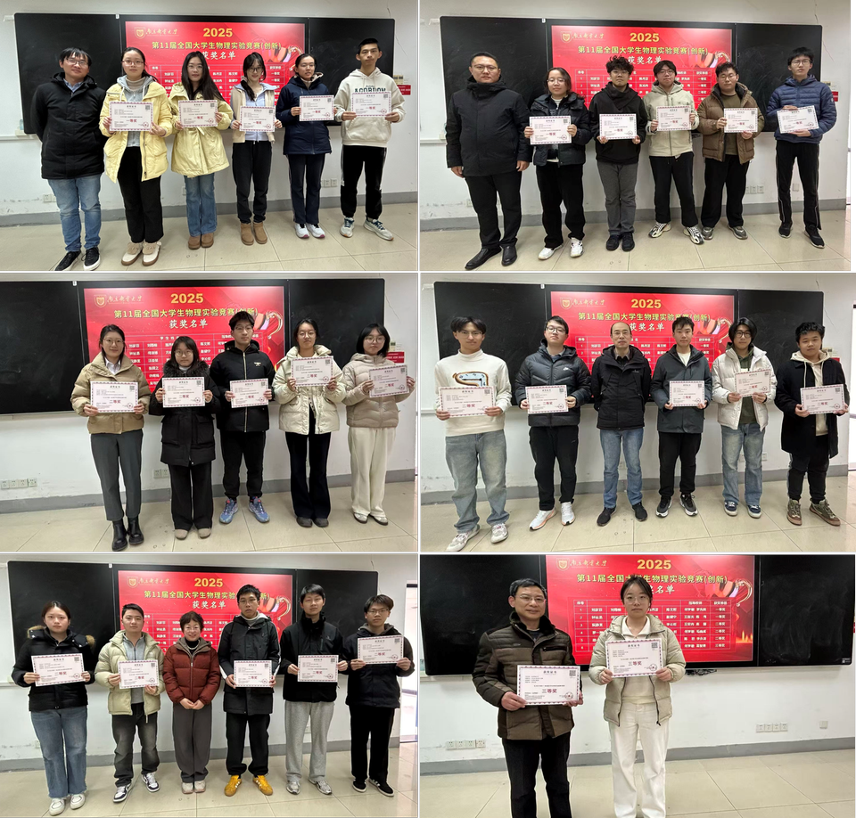 何学敏老师介绍了2025年物理实验竞赛的开展情况,从校赛、省赛到国赛,系统梳理了竞赛的整体流程、不同竞赛类别及其作品提交要求,并回顾了赛前的模拟答辩演练与决赛阶段的现场答辩实况。何老师从年级、专业和学院分布等维度,对参赛学生的情况进行了分类统计和深入分析,并为在2025年全国大学生物理实验竞赛中获奖的学生颁发了荣誉证书。