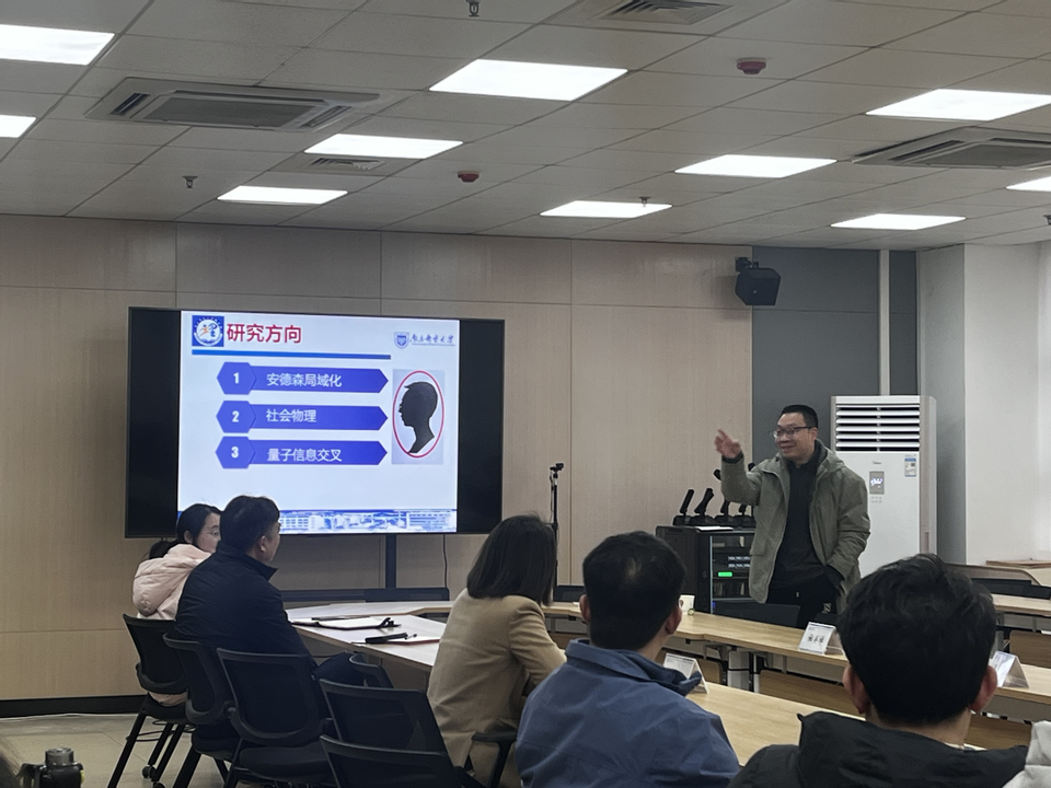 会上,来自通信与信息工程学院和yl6809永利皇宫的三位专家分别围绕各自研究领域作了精彩报告,展现了量子科技与物理学交叉融合的广阔前景。杜关祥教授以“量子精密测量:量子磁强计研制应用”为题,系统阐述了团队在量子磁强计领域的研究进展。报告从研究背景出发,深入剖析了关键技术难点,并结合实际应用案例展示了成果的转化路径,同时分享了团队在该领域的人才培养与科研布局。王琴教授聚焦“人工智能增强型量子保密通信系统”,探讨了人工智能技术与量子通信的深度融合。她从背景出发,详细介绍了量子密码智能稳定控制系统、一体化智能检测系统以及芯片化量子密码系统的研究进展。巩龙延教授则从“安德森局域化、社会物理、量子信息交叉”三个维度,系统阐述了其在多学科交叉领域的研究成果。报告结束后,与会师生围绕三位专家的分享内容展开了热烈讨论与深入交流,现场氛围浓厚。